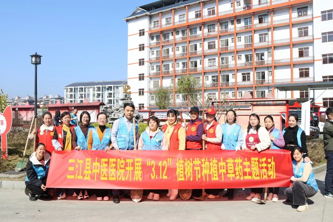 阳春三月,春回大地,万物复苏,植树添绿正当其时。3月12日植树节当天,三江县中医院在院区内开展种植中草药志愿服务活动,根据医院中药百草园的设计理念,按照植物的不同分类以及中药的药性特征,百草园划分为多个片区,每个科室负责一个片区的中药种植。三江县卫生健康局党组书记、局长吴海波,我院领导班子及全院两百余人参加植树活动。
